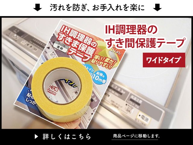 | 説明 | ◆商品名:IH調理器のすきま保護テープ 10m(幅1cm) ビルトインコンロ対応 IH すきまテープ IHプレートの隙間汚れを防ぎ、お手入れを楽にするテープです。 適度な薄さと柔らかさで、曲面への密着性を高めました。 貼っても目立ちにくい透明タイプ。 お得な10m巻。 日本製 IHプレートの隙間に溜まりやすい油汚れを簡単にお手入れできる保護テープです。 使い方は簡単、隙間をふさぐように貼り付けるだけ。 適度な薄さと柔らかさで、曲面への密着性を高めました。 貼っても目立ちにくい透明タイプ。剥がした後の糊残りも残りにくくしています。 ビルトインコンロのプレートの隙間汚れ防止にもお使い頂けます。お得な10m巻です。 |