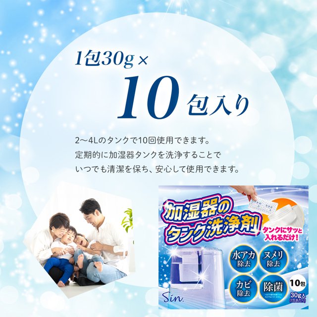 加湿器 洗浄剤 10P タンク 加湿機 洗浄 掃除 洗剤 ぬめり 防止 お手入れ 簡単 除菌剤 給水タンク用 衛生的 消臭 水あか ヌメリ カビ カルキ 除去