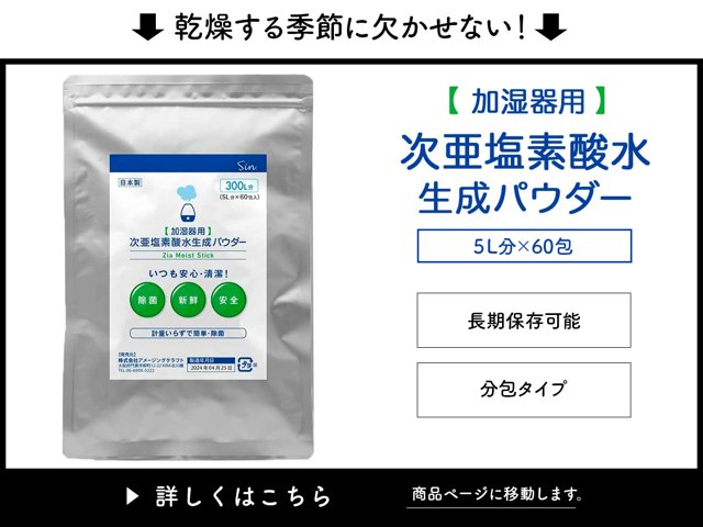 | 説明 | 加湿器のタンクには雑菌が繁殖しやすく、放置したまま加湿器を使用すると、健康に害が出る恐れがございます。 定期的にタンクを洗浄することで、加湿器を安心してご使用頂けます。本品と水を加湿器に入れ、放置するだけで洗浄できます(頑固な汚れはブラシなどでこするとより効果的です) 加湿器タンク 2L〜4Lに1包をお使いください。 製造:日本 |
