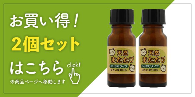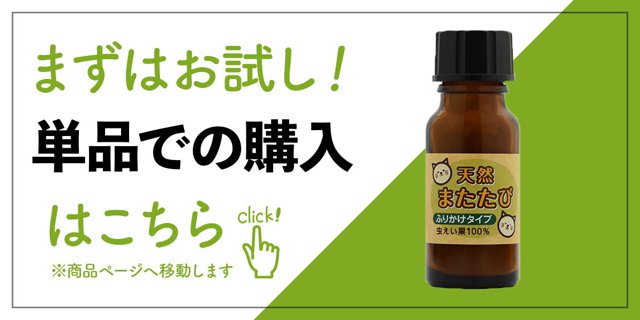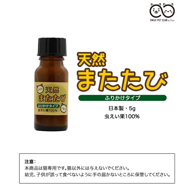 | 説明 | 猫ちゃんが大好きなまたたびの粉末です。 こんなときにおすすめ♪ ご機嫌斜めな猫ちゃんのご機嫌取りに。 普段のご飯の喰い付きが悪い時に。 爪とぎ場所のしつけなどに。 少量づつ振りかけることができます。 遮光性のある容器で、品質をより長く保つことができます。(高温多湿はさけてください) |