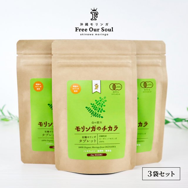 モリンガのチカラ タブレット 250粒(25g)×3袋 Free Our Soul 朝摘みモリンガ使用 沖縄県産モリンガ葉を100%!ノンカフェイン・無香料・無着色