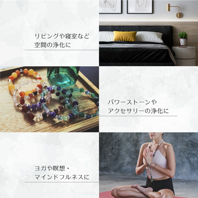 - 浄化と言えばお香を イメージしますがスプレーは 初めてです。 部屋や玄関など吹きかけた時空気が 軽くなった感じがしました。 香りも少し甘めで いい香りです。 量も多くていいですね。