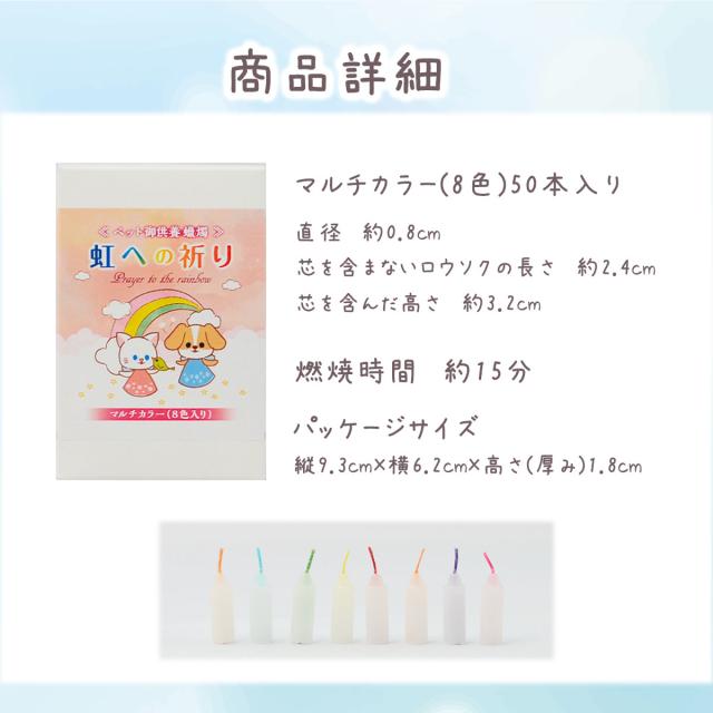 ペット 用 ろうそく 50個入 ミニ ロウソク 蝋燭 線香用 8色アソート 仏具 供養 贈り物 自宅 犬 猫 ハリネズミ ハムスター うさぎ