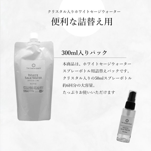 ホワイトセージ 浄化スプレー 詰め替えパウチタイプ 300ml クリスタル (水晶) 入り パワーストーン 空間 浄化 スプレー さざれ石 金運 ヨガ 瞑想 スピリチュアル ヒーリング