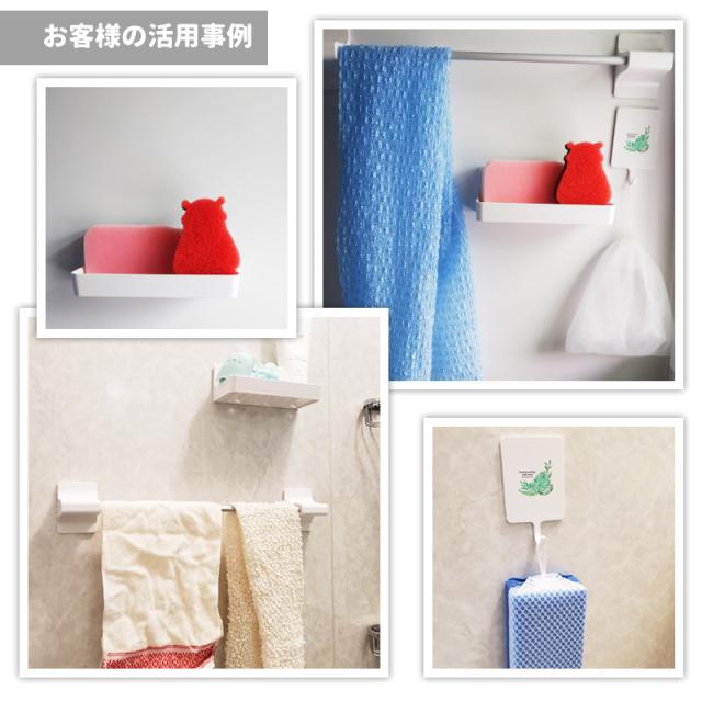 浴室の壁を傷付けにくく、サビないラバーマグネットを使用!マグネットタイプですので、付け外しが何度でもでき、位置調整が簡単にできます。