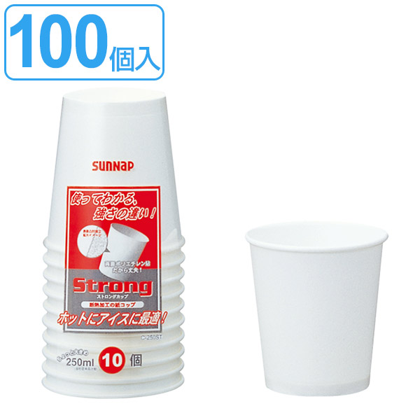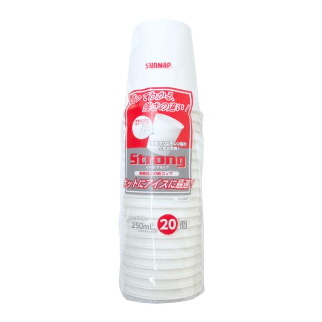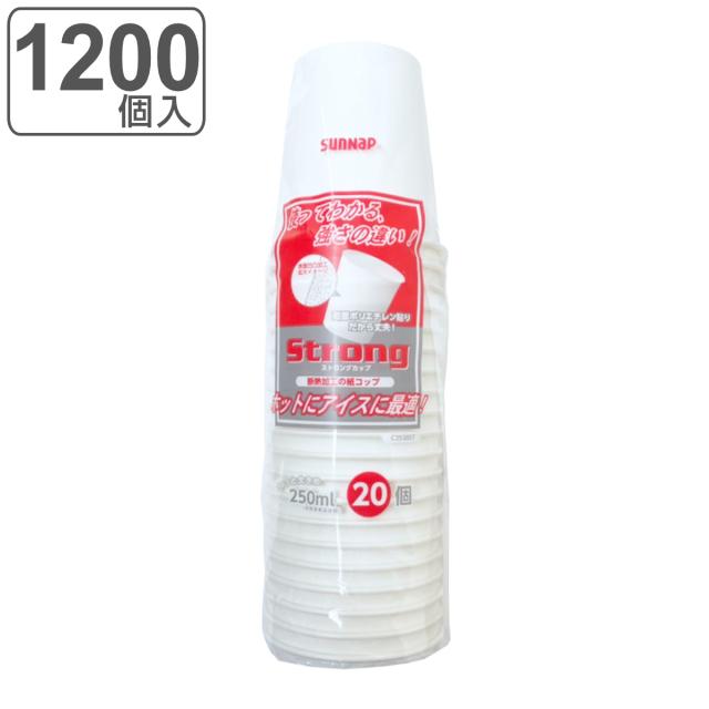 紙コップ ストロングカップ 250ml 1200個入 20個入×60セット ( 使い捨て 紙 コップ カップ 250 丈夫 頑丈 強い ホット コールド 日本製 紙容器 紙製 ペーパーコップ ペーパーカップ BBQ アウトドア パーティー キャンプ 大容量 )