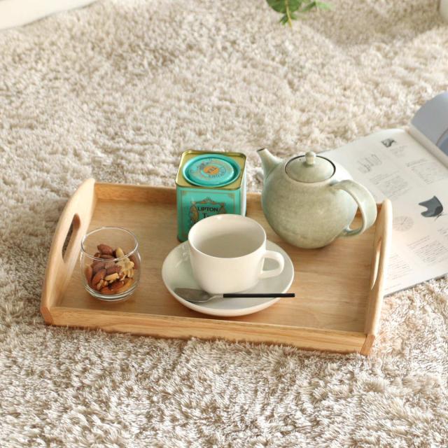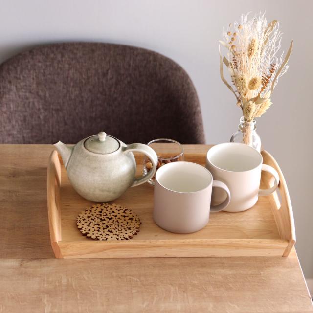 シンプルなデザインで和にも洋にも合わせやすく、日常使いにぴったりです。テーブル上にカップやポット、茶葉や砂糖などのティーセットをまとめて置いておくのにも使えます。
