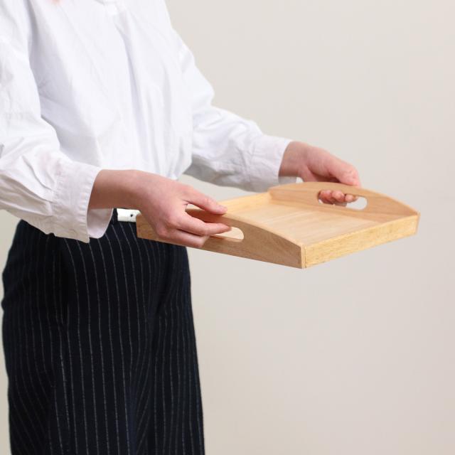天然木を使ったぬくもりのある木製のトレーです。カップ、ソーサーが2客ほど乗せられる大きさです。安定感があって、長くご愛用頂ける商品です。