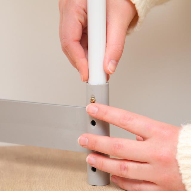 無段階伸縮式で幅約76〜93cmまで空間に合わせた設置が可能です。内部ストッパー機能で抜け落ちを防止します。