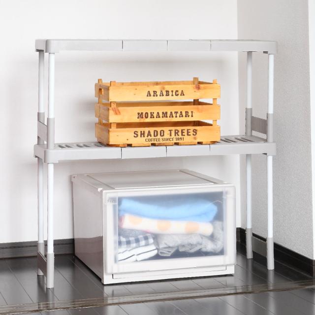 棚は2段まで積み重ねが可能です。デッドスペースになりがちな縦の空間も無駄なく活用できます。