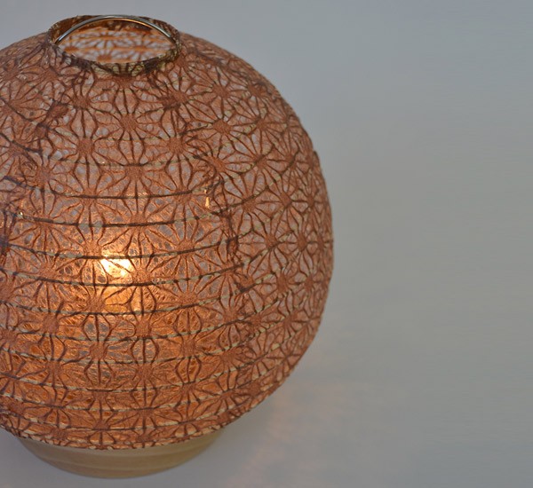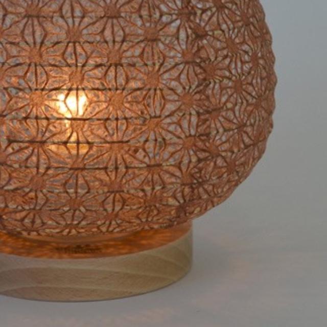 コロンとした栗型がおしゃれなテーブルライトです。麻葉柄の透かし和紙が美しく人気のデザインです。クリア電球を使用すると、透かし和紙の模様が壁などに映ってきれいです。