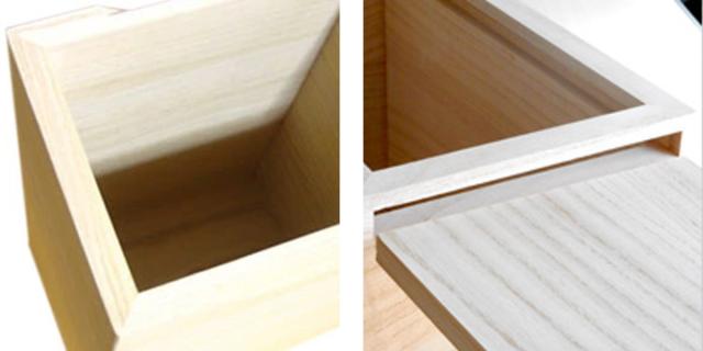 食品を入れるものなので安全面を考慮し、全て薬品を使用していない北米産の桐材を使っています。接着剤も環境基準に適用しているものを使用しており、嫌な臭いもなく、安心してお使いいただけます。