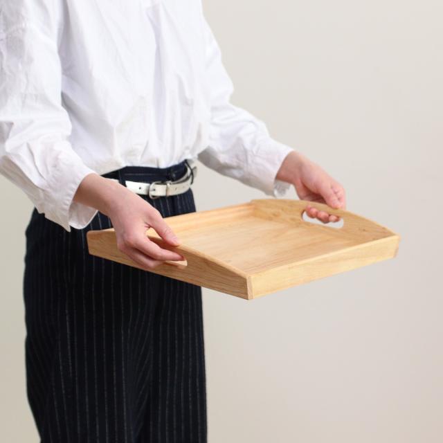 天然木を使ったぬくもりのある木製のトレーです。カップ、ソーサーが4客ほど乗せられる大きさです。安定感があって、長くご愛用頂ける商品です。