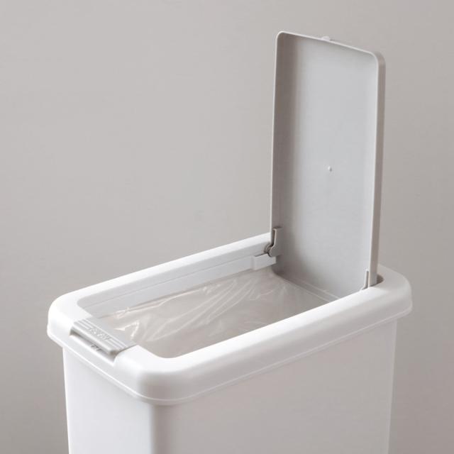 袋止めを使用してふたを上からかぶせれば、外側から袋が見えることはなく見た目もスッキリした印象を保てます。