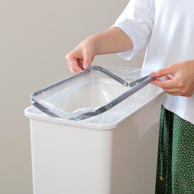 袋止めを使用してふたを上からかぶせれば、外側から袋が見えることはなく見た目もスッキリした印象を保てます。