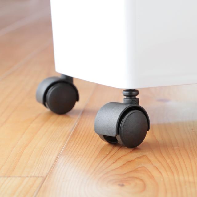 本体の下部には付属のキャスターの取り付けが可能です。ゴミ袋の付け外しや掃除をする際など移動が楽です。