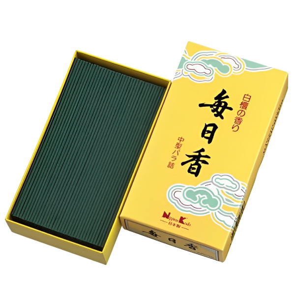 日々を強く生きてゆく人の心の糧として、毎日使ってもらいたいという願いが込められた「毎日香」。日本中で多くの方に愛され続ける、日本のお線香の代名詞的ブランドです。親しみとやすらぎの白檀の香りです。