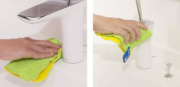 ●サッとひと拭きするだけで、水アカを残しません。