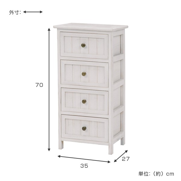 チェスト 幅35cm 4段 完成品 天然木 シャビーウッド ( 収納 サイドチェスト 背面化粧 たんす 洋タンス 桐 シャビー調 キャビネット リビング収納 四段 引き出し 白 家具 フレンチカントリー 木製 )