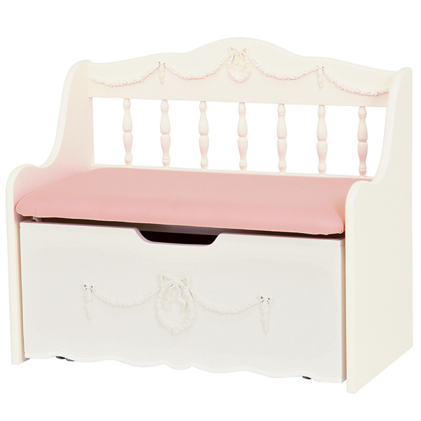 《 収納家具 おもちゃ入れ 宝箱 ベンチソファ 二人がけ お姫様 RH-1850WH 》