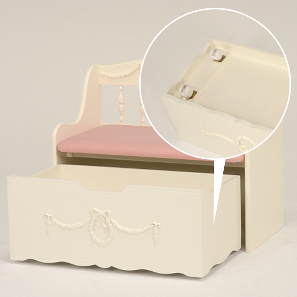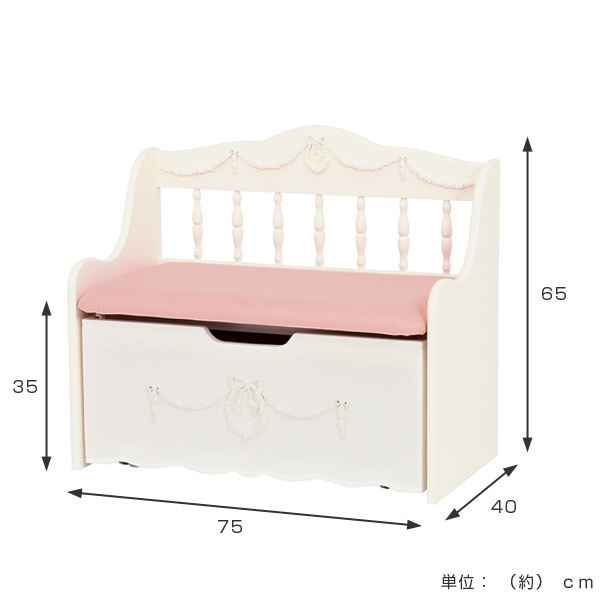 ベンチチェスト 収納ボックス付 姫系 ロマンチック 幅75cm ( ベンチ 収納 子供部屋 女の子 お片付け スツール 収納付き おもちゃ箱 かわいい )