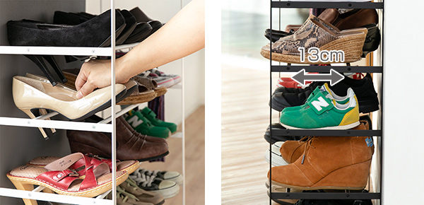 ヒールや子ども靴も収納可能
