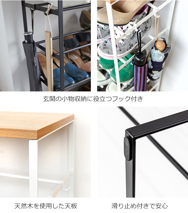 《 おしゃれ 収納 天然木 フック付き 木目 整理 整頓 スニーカー ヒール 革靴 サンダル 省 スペース 天板 荷物置き ディスプレイ ワンルーム 通気性 ハンコ はんこ 判子 鍵 カギ かぎ 植物 グリーン オシャレ お洒落 男性用靴 女性用靴 子ども用靴 パンプス 靴置き 靴入れ オープンラック 滑り止め付き ブラック ホワイト 山崎 実業 YAMAZAKI 3370、3369 》
