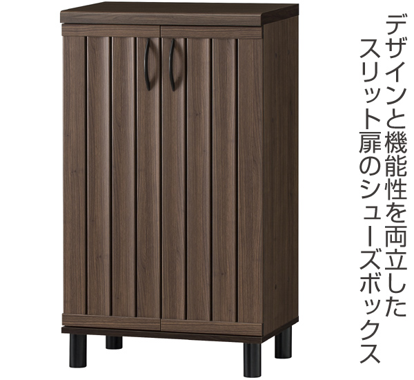 和洋を問わないお洒落なデザイン和風な玄関、洋風な玄関どちらにも合う、ブラウンのスリット扉のシューズボックスです。上質なデザインなので、お客様を招きたくなる素敵なエントランスを演出します。さらにスリッパラック(別売り)を取り付けることで玄関の収納力がぐっと上がります。