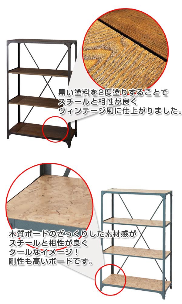 オープンラック 幅91cm 3段 スチールフレーム ヴィンテージ ( ラック 収納棚 ディスプレイラック スチール レトロ シェルフ ディスプレイ収納 OSB フリーラック オープン棚 棚 )