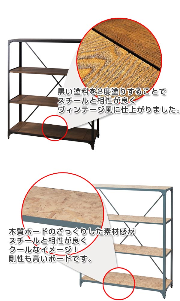 オープンラック 幅121cm 3段 スチールフレーム ヴィンテージ ( ラック 収納棚 ディスプレイラック スチール レトロ シェルフ ディスプレイ収納 OSB フリーラック オープン棚 棚 )