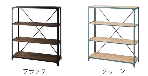 ブラックは、黒い塗料を2度塗りすることでスチールと相性が良く、ヴィンテージ風に仕上がりました。グリーンは、木質ボードのざっくりした素材感と、スチールとの相性が良く、クールなイメージです。収納スペースが広いので、沢山のものを置いて整理整頓できます。カバンや、洋服をお店のようにディスプレイしてもおしゃれです。