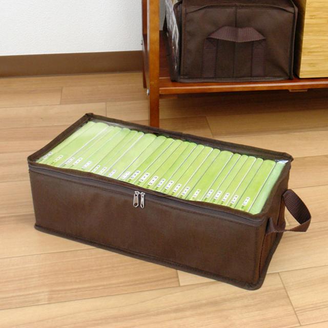 《 LH19892 持ち手付き メディア収納ケース ストッカー まんが マンガ コンパクト 折りたたみ 茶色 ブラウン 使いやすい 便利 おすすめ人気 ケース ボックス ダブルファスナー コレクション 整理 整頓 片付け 仕切り付き 約23冊 折り畳み 》