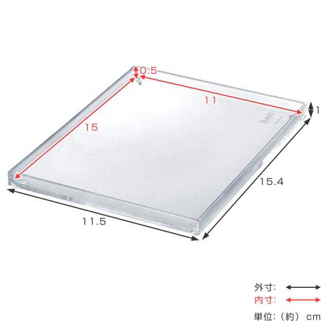 | サイズ | 約 幅11.5×奥行15.4×高さ1(cm) 仕切り一つ分の内寸:約 幅11×奥行15×高さ0.5(cm) |