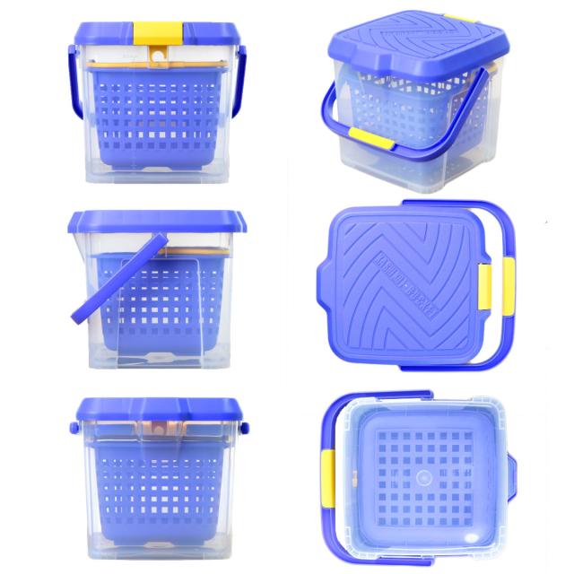 ![]() 中カゴで水切りできる かしこいバケツ | ![]() 2つのバケツを使い分け がんばりバケツ |