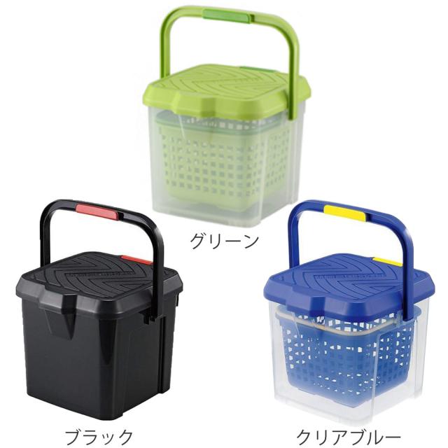 多用途に対応できる工夫がたくさん備え付けられているバケツです。中には本体に収納できるカゴが付いていて、丈夫な蓋付きなのが特徴です。ひとつあれば様々な使い方ができる便利なアイテムです。