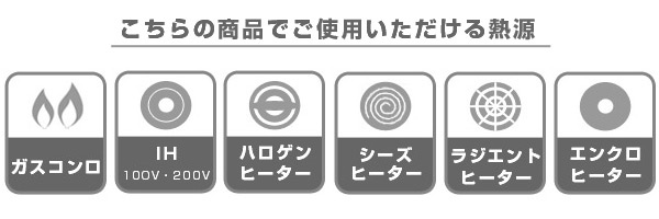 ガス火はもちろん、IH調理器にもお使いいただけます。さまざまな熱源に対応しておりますので環境を選ばずご使用可能です。