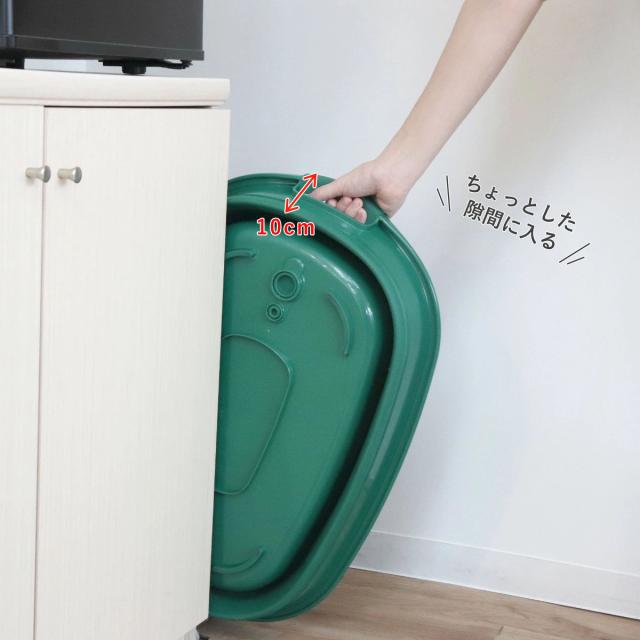 手洗いやつけ置き洗いに便利な折りたためるソフトタブ23Lです。使わないときは両サイドを押し込むだけで簡単にたためます。たたんだ際の厚さは約10cmとコンパクトなので、ちょっとした隙間があれば収納できます。