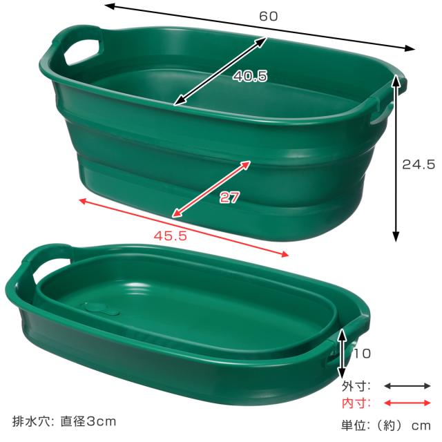 | 材質 | 本体・取っ手・滑り止め・水抜き栓:熱可塑性エラストマー 枠・底:ポリプロピレン |