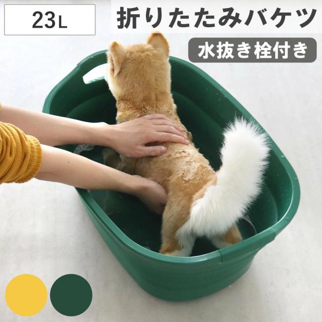 バケツ 折りたたみ 23L ソフトタブプラス 中栓付き ( 折りたたみバケツ 大容量 柔らかい 収納 持ち手 つけ置き洗い 掃除 清掃 排水栓付き 日本製 四角 ランドリーバスケット 洗い桶 洗面器 おりたたみ コンパクト スリム 洗濯 )