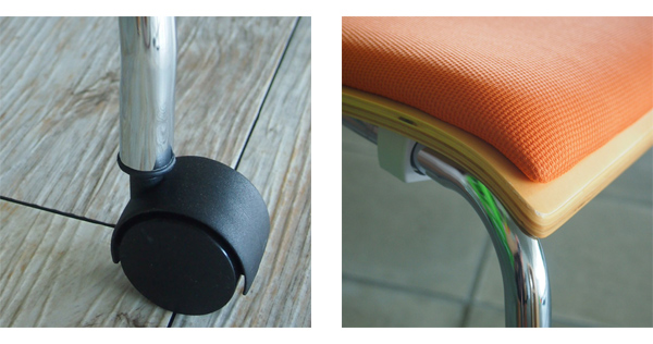 仕様:キャスター付き、座面パッド付き、4脚までスタッキング可※クッションに跡が残りますので長時間のスタッキングは避けてください。