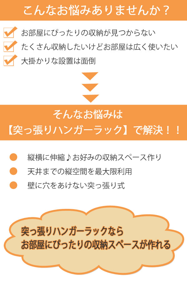 ●突っ張りという構造上、定期的にしっかりとネジが留まっているか・突っ張りが効いているかをご確認下さい。