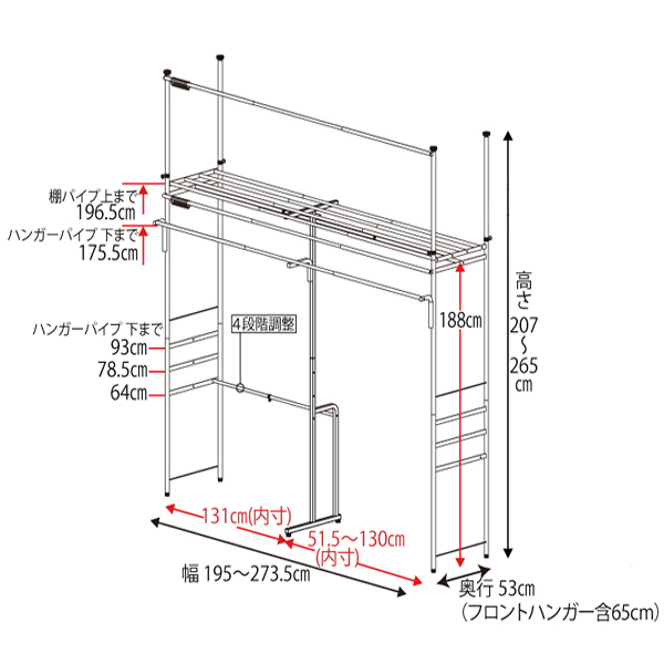 | サイズ | 約 幅195〜273.5×奥行53×高さ207〜265(cm) |
