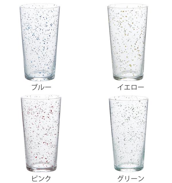 まるで星屑をちりばめたような涼しげなデザインのグラスです。ガラスの澄んだ透明感と鮮やかな配色が気分を盛り上げてくれます。たっぷり氷を入れて飲みたいアイスコーヒーや、晩酌のビールにぴったりなサイズです。