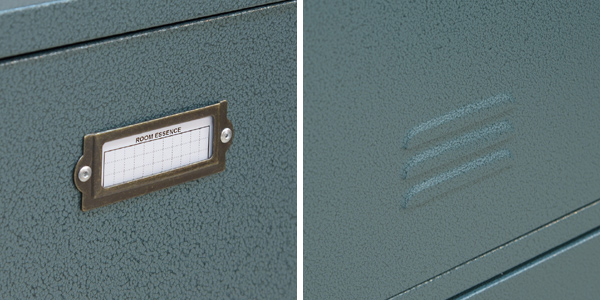 | ネームプレート付き 嬉しいネームプレート付きです。これでどの場所に何が入っているかすぐに分かりますね。 | 細部までこだわったつくり ロッカーをイメージした【Raldシリーズ】は、ルーバーカットを施すなど、細部にまでこだわりを感じられるつくりです。 |