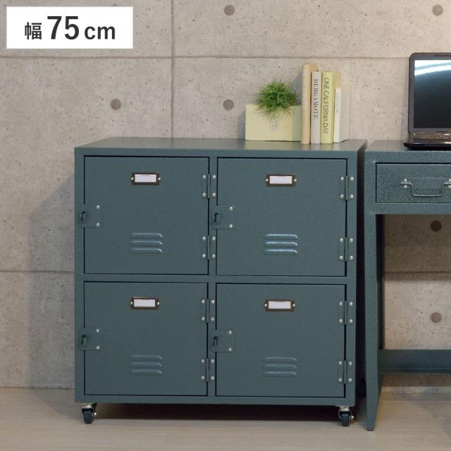 チェスト 幅75cm 2段2列 扉付 スチールボックス ミリタリー調 キャスター付 ( 収納 書類収納 サイドチェスト サイドワゴン ミニチェスト キャビネット 多目的収納 キャスター コンパクト A4 )