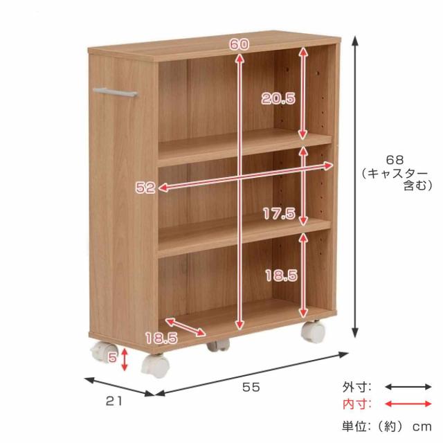 | サイズ | 約 幅21×奥行55×高さ68(cm) 棚板厚さ:約 1.5(cm) |