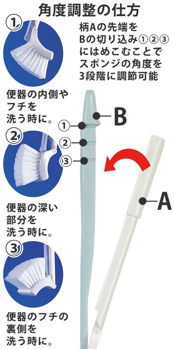掃除したい部分に、角度調節して便器の洗いにくいところが簡単に洗えます。