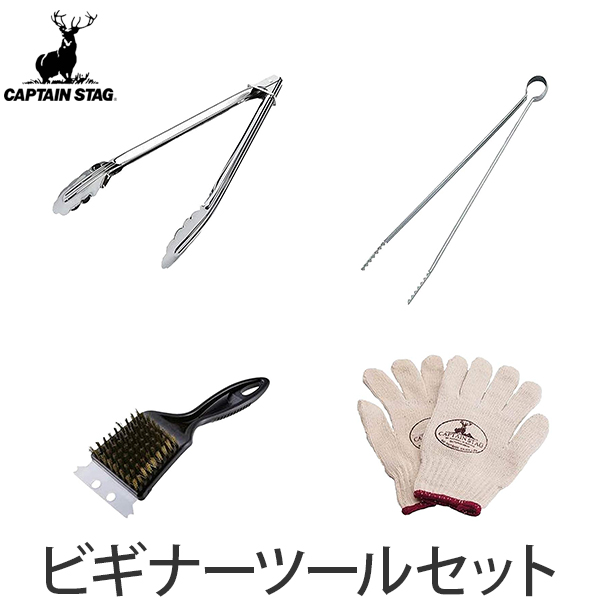 バーベキューツール BBQ ビギナーツールセット キャプテンスタッグ ( バーベキュー ツール 道具 アウトドア アウトドア用品 キャンプ キャンプ用品 BBQ トング 炭バサミ 炭ばさみ 火バサミ ブラシ アミブラシ 鉄板掃除 軍手 )