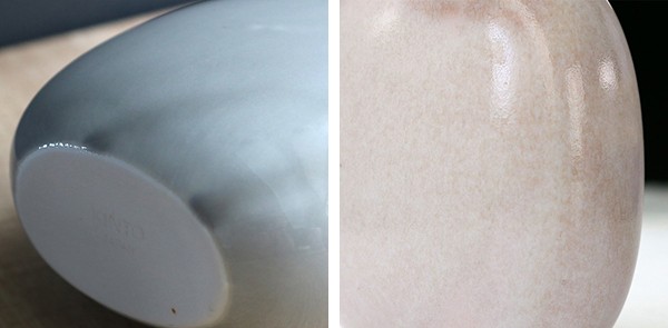 陶器・磁器商品では、上記のような特性がみられる場合があります。これらは、原料となる土に由来するもの、手作業で行う工程で生じるもの、また焼成する際の火の当たり方や技法によるものなど、陶器・磁器商品の特性です。ひとつひとつの商品の持つ個性、温かみある風合いとしてお楽しみいただければ幸いです。