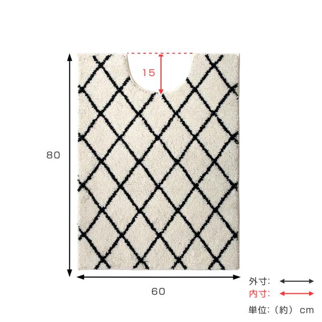 ロングトイレマット Saltoru? ベニワレン 80x60cm ホワイト ( トイレ マット トイレ用品 トイレマットのみ 単品 60cm 幅60 ロングタイプ 洗える ウォッシャブル 滑り止め トイレタリー 白 灰色 日用品 日用品雑貨 )